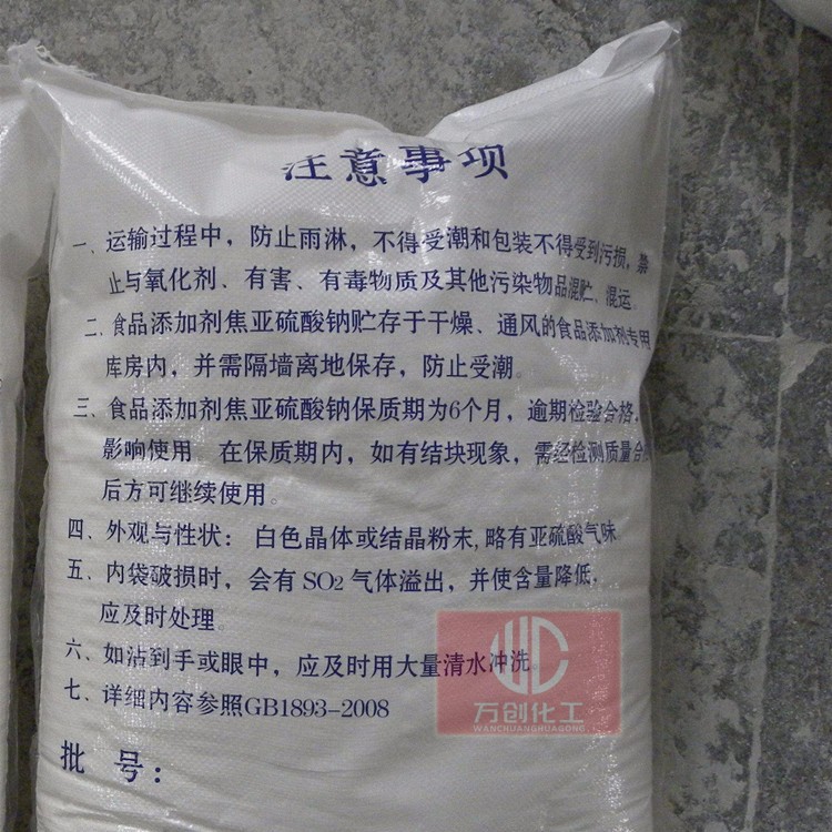 別稱:偏重亞硫酸鈉,一縮二亞硫酸鈉,重硫氧,焦性亞硫酸鈉,偏亞硫酸鈉,焦亞硫酸鈉,食用焦亞硫酸鈉