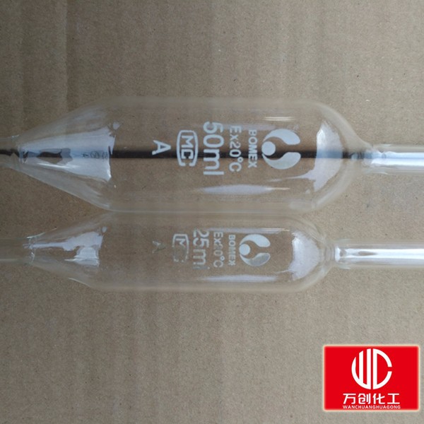 大肚移液管移液管是用來準(zhǔn)確移取一定體積的溶液的量器,只用來測量它所放出溶液的體積。它是一根中間有一膨大部分的細長玻璃管。其下端為尖嘴狀,上端管頸處刻有一條標(biāo)線,是所移取的準(zhǔn)確體積的標(biāo)志。常用規(guī)格:1ml2ml5ml10ml25ml 50ml